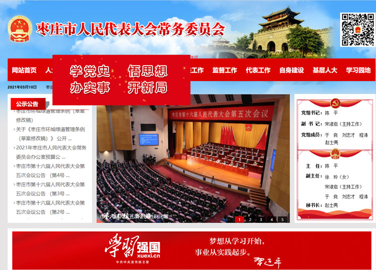 棗莊市人民代表大會是棗莊市的國家權(quán)力機關(guān)。 棗莊市人民代表大會每屆任期五年,每年至少舉行一次會議。會議由市人大常委會召集。經(jīng)過五分之一以上代表建議,可以臨時召集市人民代表大會會議。1960年,棗莊市人民代表大會建立,并召開了棗莊市第一屆人民代表大會第一次會議。 棗莊市人民代表大會行使下列職權(quán):在本行政區(qū)域內(nèi),保證憲法、法律、行政法規(guī)和上級人民代表大會及其常委會決議的遵守和執(zhí)行,保證國家計劃和國家預(yù)算的執(zhí)行;審查和批準本市的國民經(jīng)濟和社會發(fā)展計劃、預(yù)算以及它們執(zhí)行情況的報告;討論、決定本市的政治、經(jīng)濟、教育、科學(xué)、文化、衛(wèi)生、環(huán)境和資源保護、民政、民族等工作的重大事項;選舉市人大常委會的組成人員;選舉市長、副市長;選舉市監(jiān)察委員會主任、市中級人民法院院長和人民檢察院檢察長。選出的市人民檢察院檢察長,須報經(jīng)省人民檢察院檢察長提請省人大常委會批準;選舉省人民代表大會代表;聽取和審查市人大常委會的工作報告;聽取和審查市人民政府、中級人民法院和人民檢察院的工作報告;改變或者撤銷市人大常委會的不適當?shù)臎Q議;撤銷市人民政府的不適當?shù)臎Q定和命令;保護社會主義的全民所有的財產(chǎn)和勞動群眾集體所有的財產(chǎn),保護公民私人所有的合法財產(chǎn),維護社會秩序,保障公民的人身權(quán)利、民主權(quán)利和其他權(quán)利;保護各種經(jīng)濟組織的合法權(quán)益;保障少數(shù)民族的權(quán)利;保障憲法和法律賦予婦女的男女平等、同工同酬和婚姻自由等各項權(quán)利。 棗莊市第十六屆人民代表大會代表共有394名。市十六屆人大一次會議于2017年2月19日至23日舉行,決定設(shè)立市第十六屆人民代表大會法制委員會、內(nèi)務(wù)司法委員會、財政經(jīng)濟委員會、教育科學(xué)文化衛(wèi)生委員會、城鄉(xiāng)建設(shè)環(huán)境保護委員會、農(nóng)業(yè)與農(nóng)村委員會、民族僑務(wù)外事委員會。 棗莊市十六屆人大三次會議于2019年1月6日至9日舉行,決定增設(shè)棗莊市第十六屆人民代表大會社會建設(shè)委員會和更名棗莊市第十六屆人民代表大會內(nèi)務(wù)司法委員會為棗莊市第十六屆人民代表大會監(jiān)察和司法委員會。 |