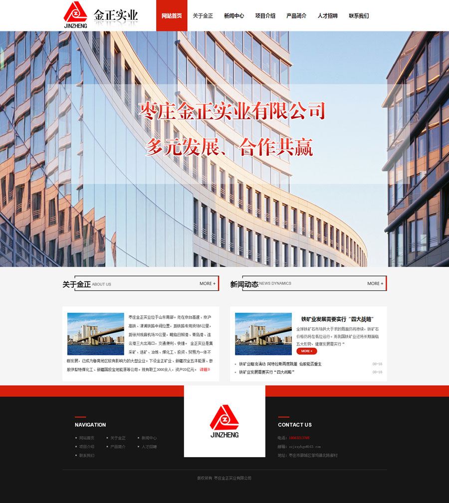 祝賀金正實業(yè)有限公司網(wǎng)站上線 公司介紹: 棗莊金正實業(yè)位于山東南部。處在京臺高速、京滬高鐵、津浦鐵路中間位置,距鐵路專用貨場5公里,距徐州觀音機場70公里,毗臨日照港、青島港、連云港三大出海口,交通便利、快捷。 金正實業(yè)是集采礦、選礦、冶煉、煤化工、投資、貿易為一體不斷發(fā)展,已成為魯南地區(qū)較有影響力的大型企業(yè)。下設金正礦業(yè)、新疆雙全五洋能源、并參股伊犁特煤化工、新疆國投寶地能源等公司。現(xiàn)有職工3000余人,資產(chǎn)20億元。先后獲得棗莊百強企業(yè)、突出貢獻企業(yè)、誠信經(jīng)營企業(yè)、納稅十強企業(yè)、山東省工會工作先進企業(yè)等榮譽稱號。 金正礦業(yè)年產(chǎn)鐵精粉60萬噸,金正實業(yè)年產(chǎn)鑄造用生鐵26萬噸,主要銷往江蘇、浙江、福建、安徽、河北、山東等地,深受廣大客戶好評。 公司始終秉承“多元發(fā)展、合作共贏”的經(jīng)營理念,遵循“精誠團結、銳意進取”的企業(yè)精神。竭誠為客戶提供優(yōu)質的產(chǎn)品和服務。真誠歡迎各界同仁前來指導、合作,我們愿與您風雨同舟、攜手共創(chuàng)美好未來。 棗莊金正實業(yè)有限公司