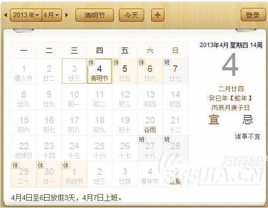 其中4月4號(hào)是前期四,4月5號(hào)是星期五,4月6號(hào)是星期六,